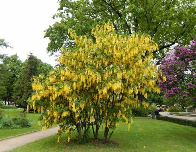 Citās valodās dēvēts par zelta ķēdes koku, kura ziedi 60cm garās zelta ķēdēs kā lietus nolīst pāri visam kokam. Šis skaistums būs piemērots vietām, kur ziemas aukstums nebūs lielāks par -25C. Ja arī apsals, varam droši apcirpt un atkal baudīt šo satriecošo, smaržojošo skaistumu.